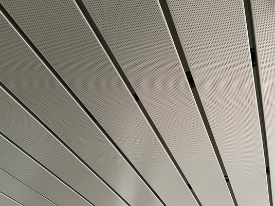Die abgehängten DOBNER Aluminium-Paneeldecken mit offener Fuge erhalten Sie wahlweise mit glatter oder perforierter Oberfläche